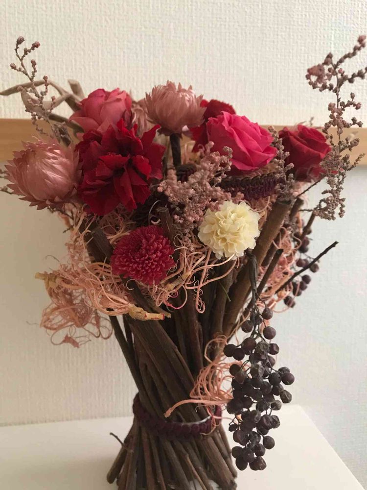 色によっては1年経たないうちに色褪せるのもあるのでこのアレンジは長く楽しませてくれて作った甲斐があります💕