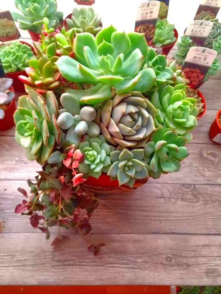 私もこういう大きい多肉ちゃんをギュウギュウやりたい😆素敵です😍ちなみに前に垂れてるのはなんていう植物ですか?赤くて可愛い💕