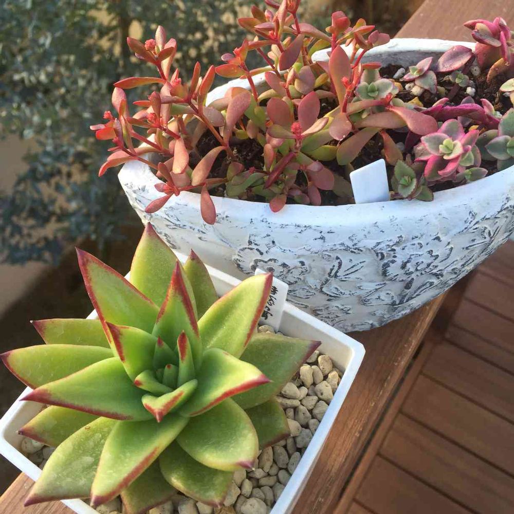 背後のクラッスラ紅稚児・ペルシダ鉢も紅葉がキレイ✨
