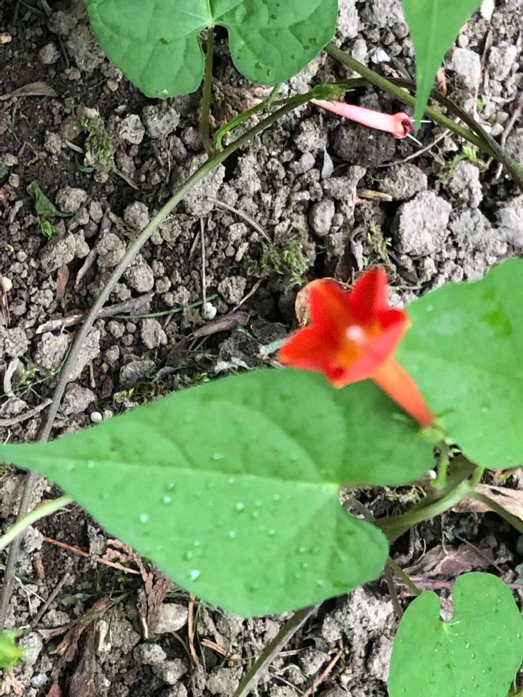 去年ベランダで育てていて枯れた、と思っていたマルバルコウソウが地面に咲いていました。