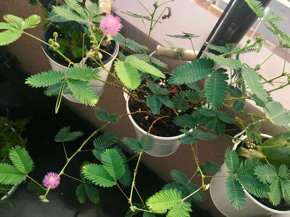 お花咲いた!小さかったオジギソウが気付けばこんなに大きくなってた。割とほったらかしにしてたのに。かわいい。