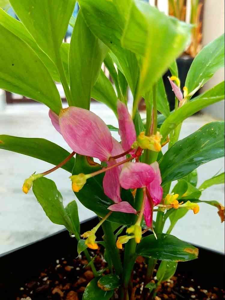 先日買ったコショウジンジャー!花が咲きました!葉っぱを触るとネショウガの匂いがします~💓