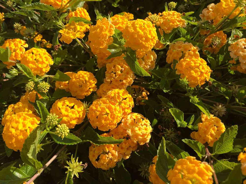 今日のお花のランタナ。近所の植え込みで元気に咲き乱れています。