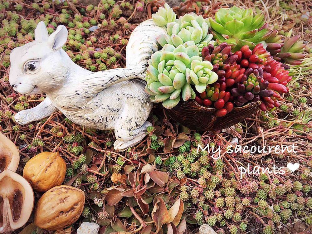 可愛いウサギさんが可愛い多肉ちゃん積んでる(///∇///)💕
