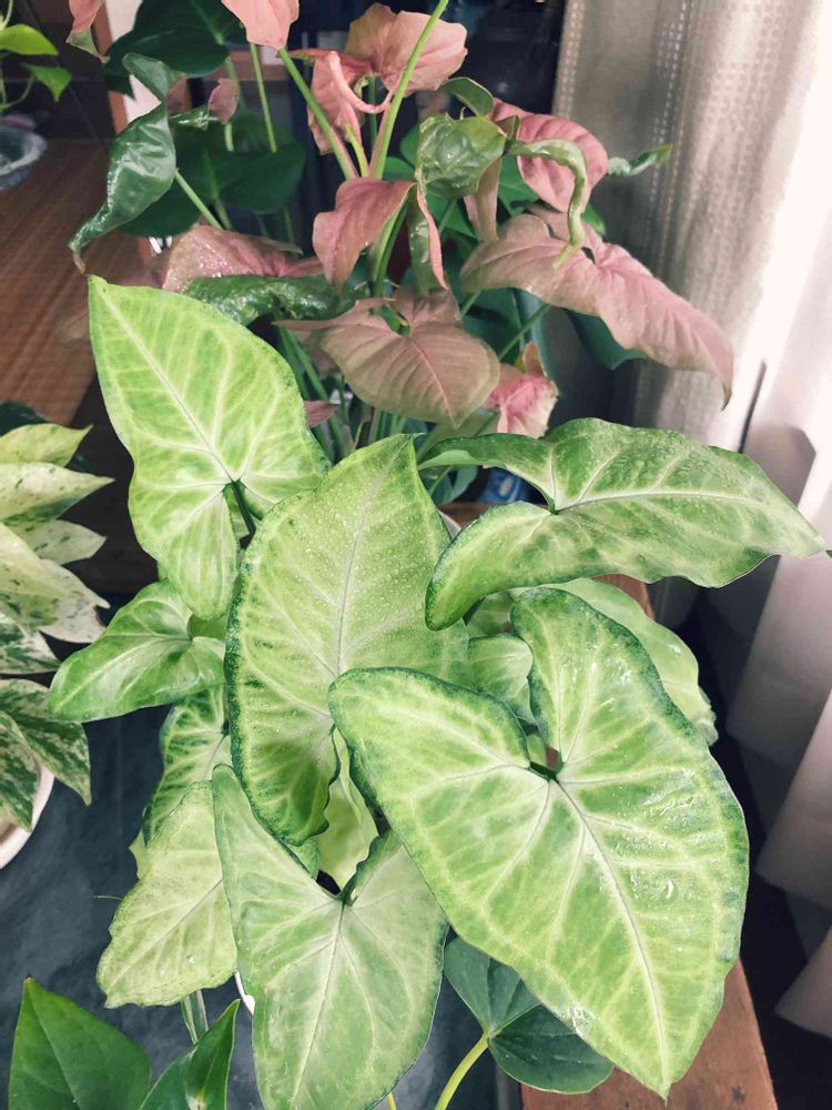 窓辺,シンゴニウム ホワイトバタフライ,シンゴニウム ピンクの投稿画像