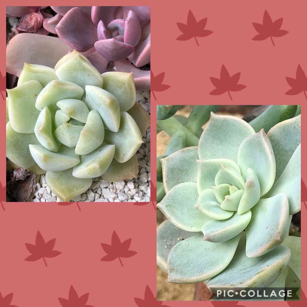 どちらも他の多肉と、寄せ植えにしてるんですが、日当たりの違いで、ここまで見た目に違いが💦