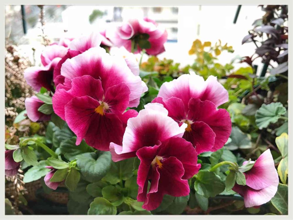 バルコニー/ベランダ,うえたビオラ レインボーウェーブ ピンクローズ,ベランダガーデニングの投稿画像