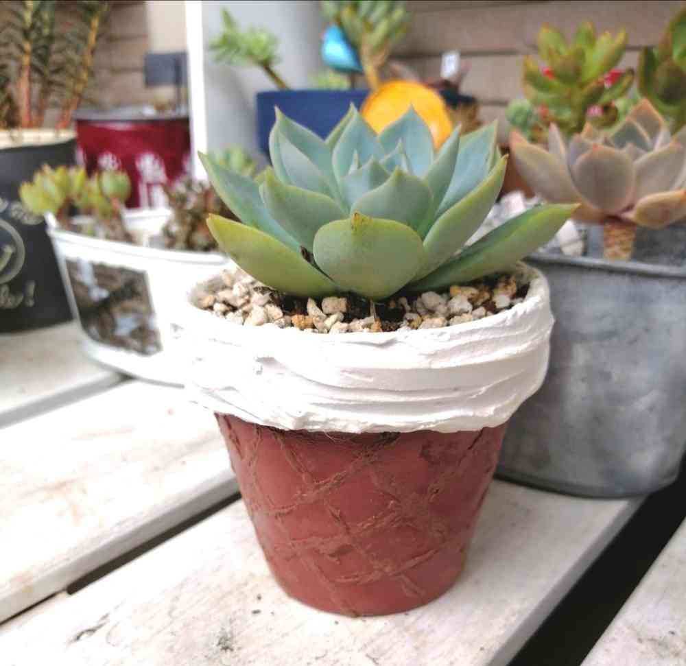 スイーツワッフルリメ鉢✨に、綺麗なまま夏越してくれた数少ないエケベリアの1つ。