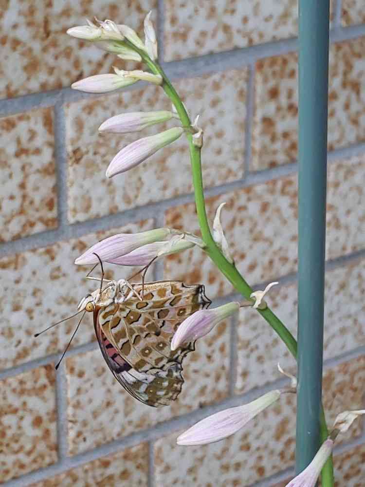ギボウシの蕾に蝶々が休んでいました。見たことがない蝶々です。花ではないですが知ってる方居られたら教えて下さい。