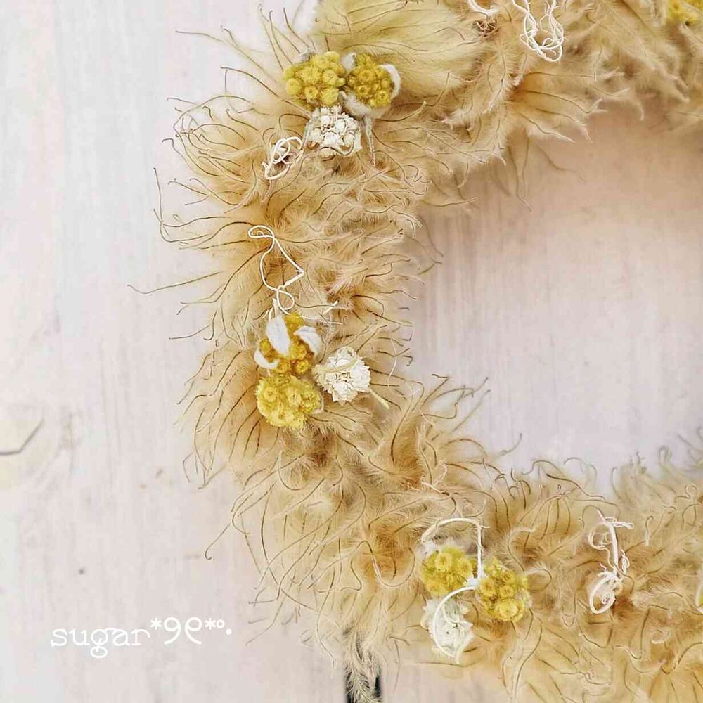 咲き終わってもそのままにして置くと花弁が落ちて自然に芯が残るから、こんなにふわふわする前に✂️して吊して置くと2日位でふわふわしてくるよー𑁍܀
