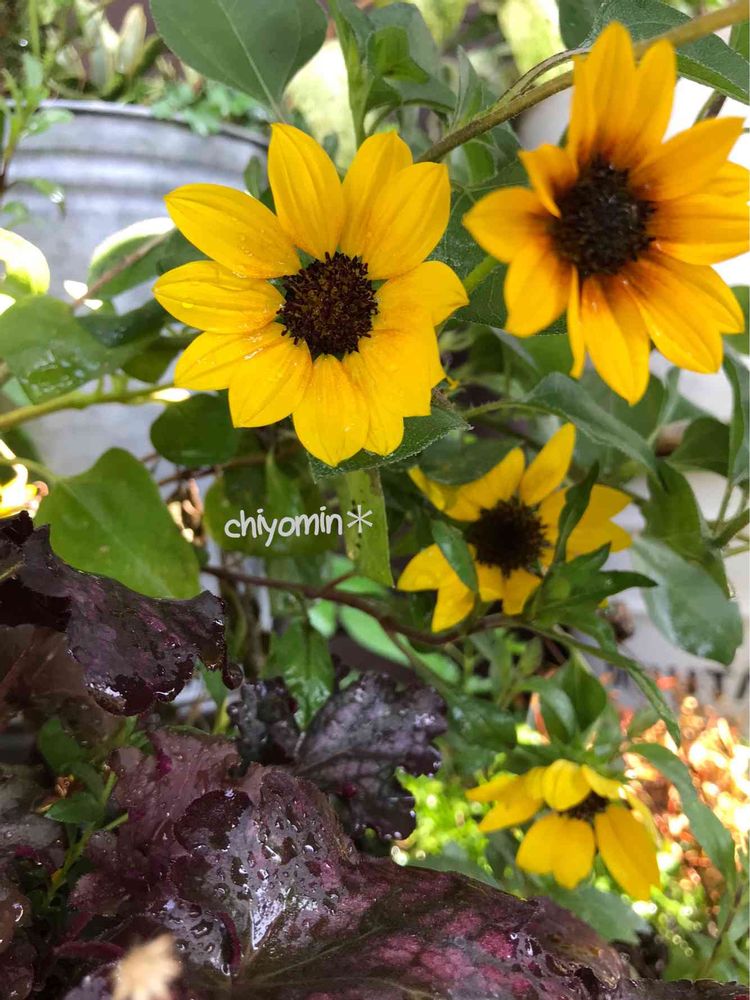 おはよう ✨寄せ植えなの💛めっちゃ可愛いヒマワリちゃんだね