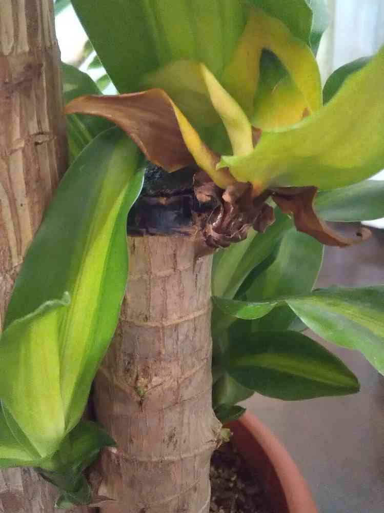 ドラセナ・マッサンゲアナの若い芽が枯れました。