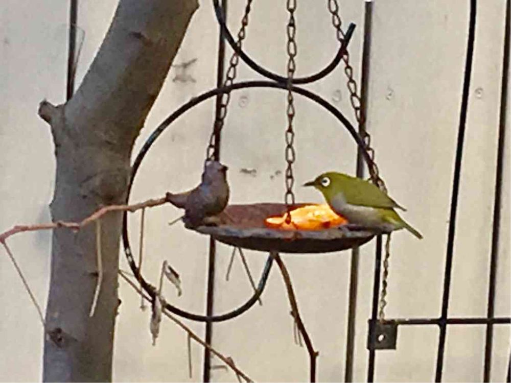 メジロはミカン、シジュウカラはピーナッツが好きみたいです🎵