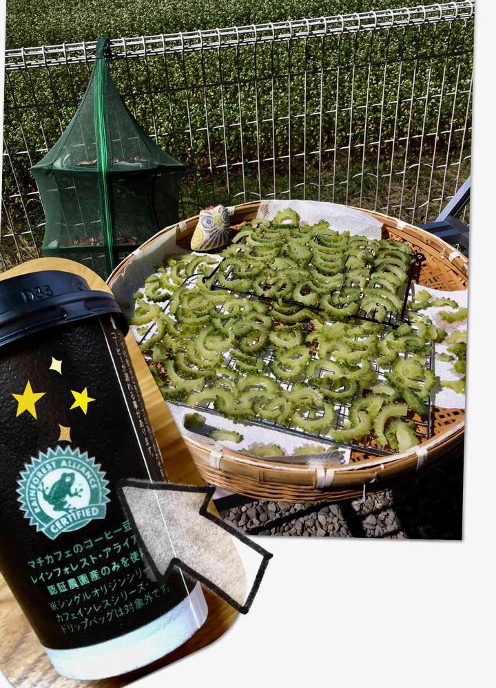 マチカフェのカップの🐸カエルマークまでゴーヤに見えてきます(@_@)
