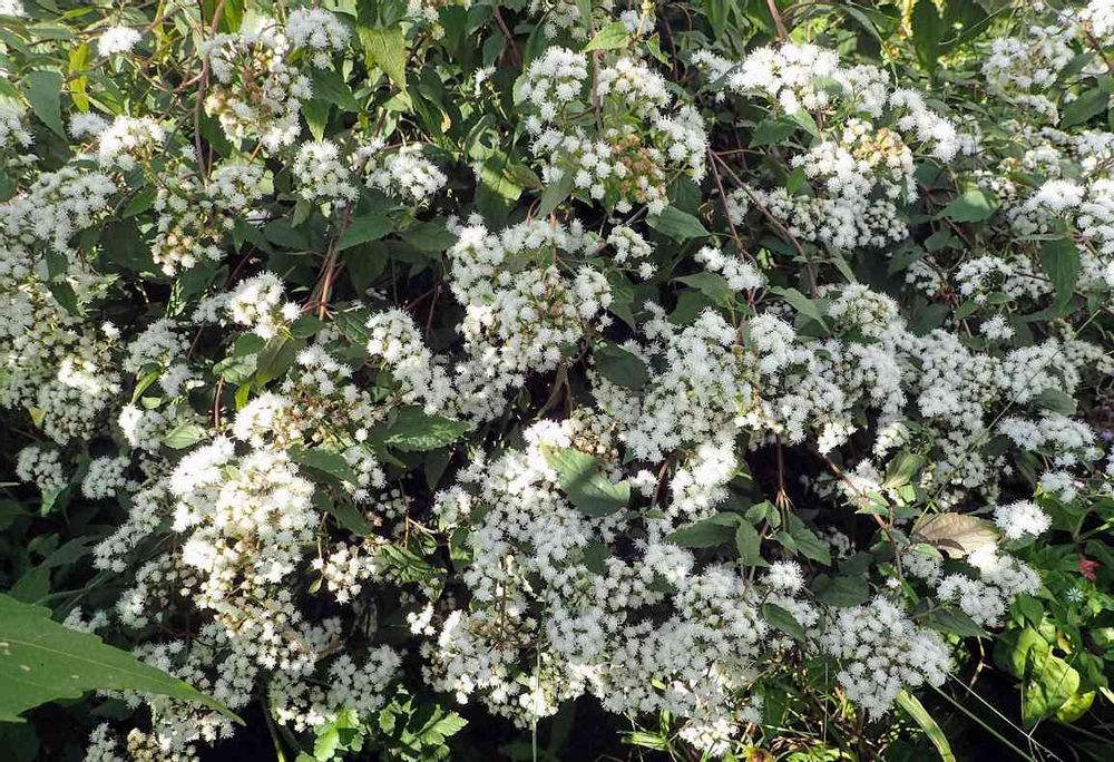 今日のお花、フジバカマの仲間の、ユーパトリウム・チョコラータです。銅葉で白い花が特徴なのですが、花の咲くころはかなり緑の葉になってしまいます💦それでも魅力的な品種ではあります😁