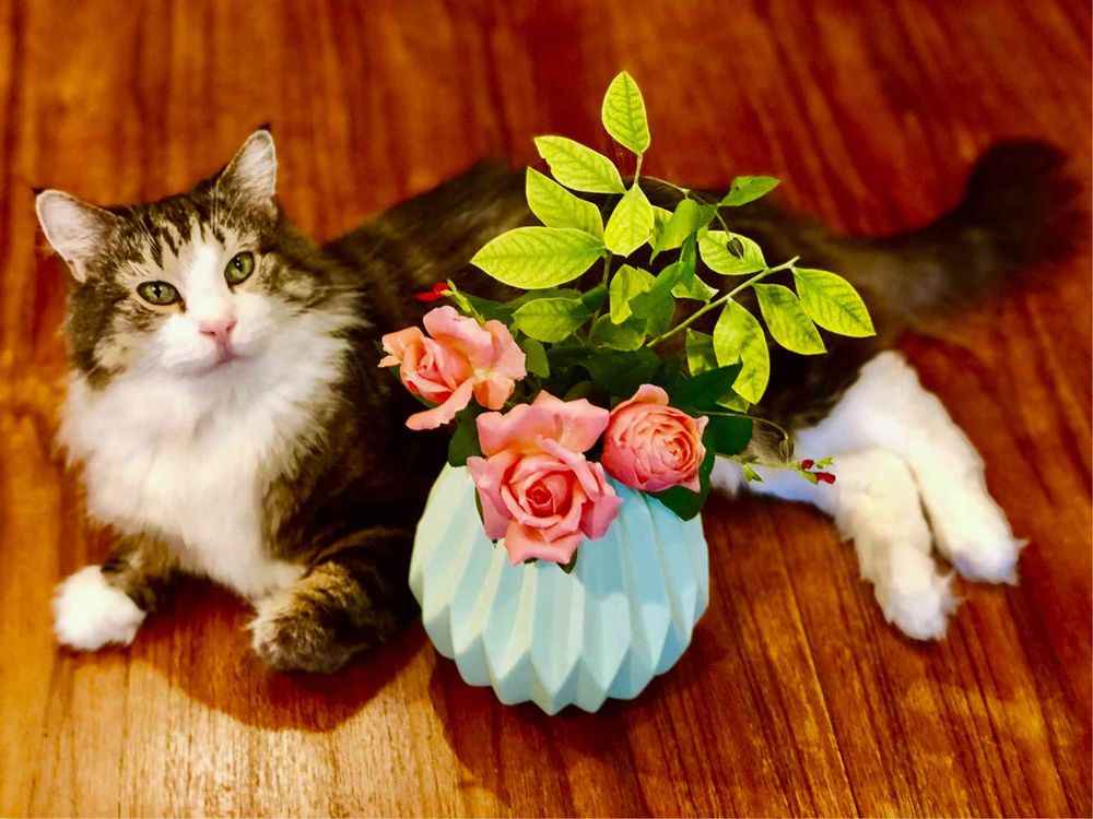 バルコニーでバラやその他を育ててます。場所に限りがあるのですが。ネコたちもみんなお花好き🌸