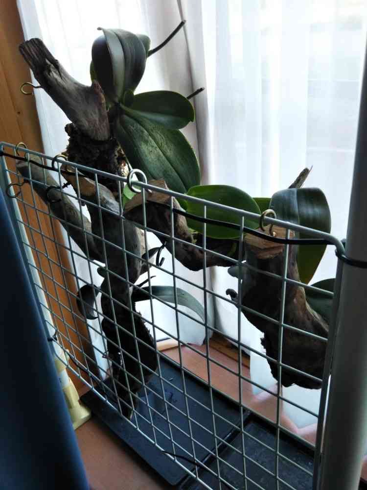 流木胡蝶蘭ですね😃年に数回と年10日しか泊まらない息子の部屋に、百均網で作成しました。写ってる胡蝶蘭4本、隣に2本あります🙇現在の温度25度あります。朝方の冷え込みもありますから、室内に移動しました。