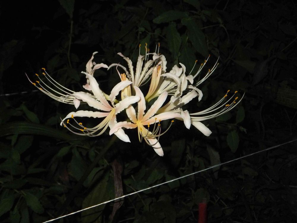 会社からの帰り、雑木林の歩道脇に白いお花。 彼岸花? パチリ