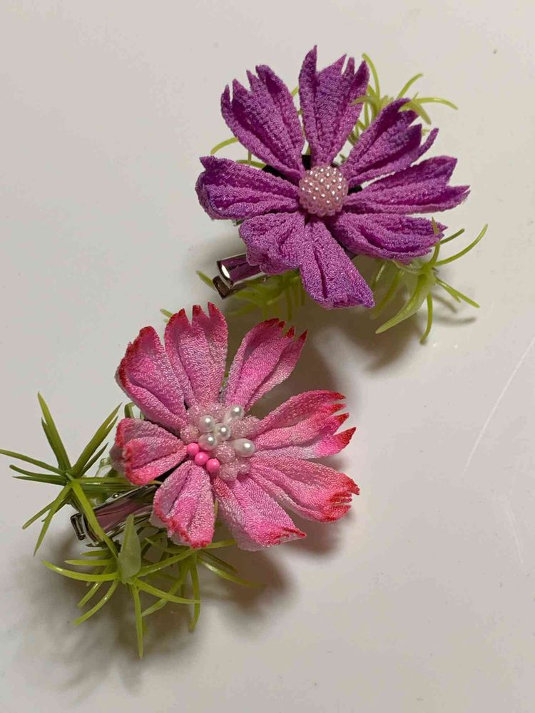 あらら..痛いと泣かないでよ❤️🤗今日はこのコスモスの花を髪留めに使っていこうと..(^^)