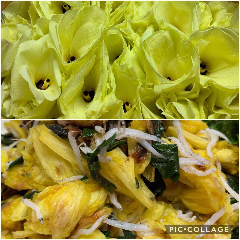 しらす干し 金時草 鰹節 花オクラ の和え物