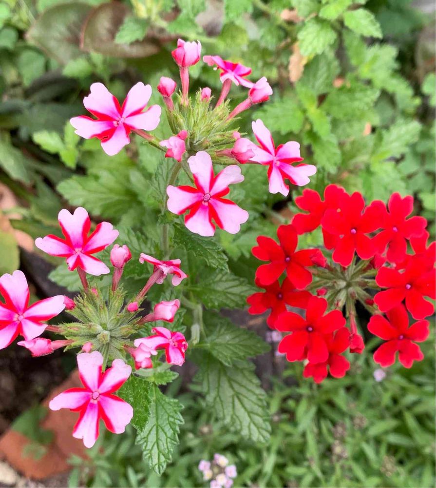 バーベナ、我が家には気づけばストライプしかお迎えしてなかったのでこうやって単色で咲いてくれてラッキーでした😆💕