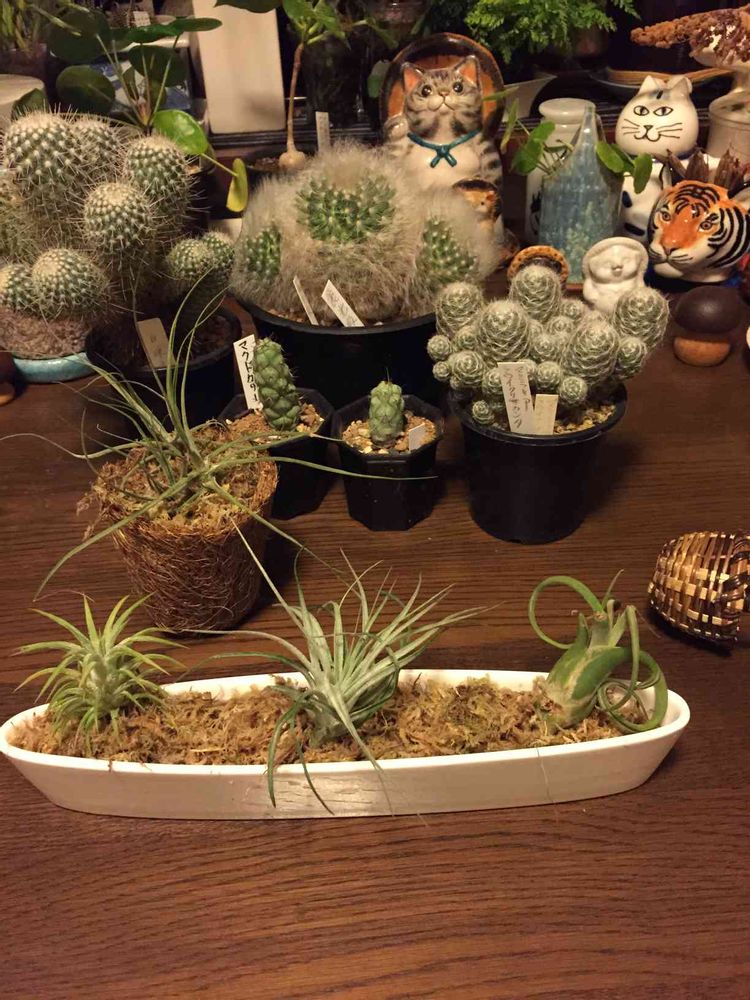 エアプランツの手入れって朝晩霧吹き、たまにソーキングで充分だと思っていたのですが、昨日カクタスクラブのおじ様方と話してたら、水苔とかに植え付けた方がいいそう。植え付けせず、買ってきたままの姿というのは、生きてはいるねって状態で、エアプランツにとっては心地の良い状態ではないそう。なので早速植え付けたんですが、センスがないので残飯状態😥