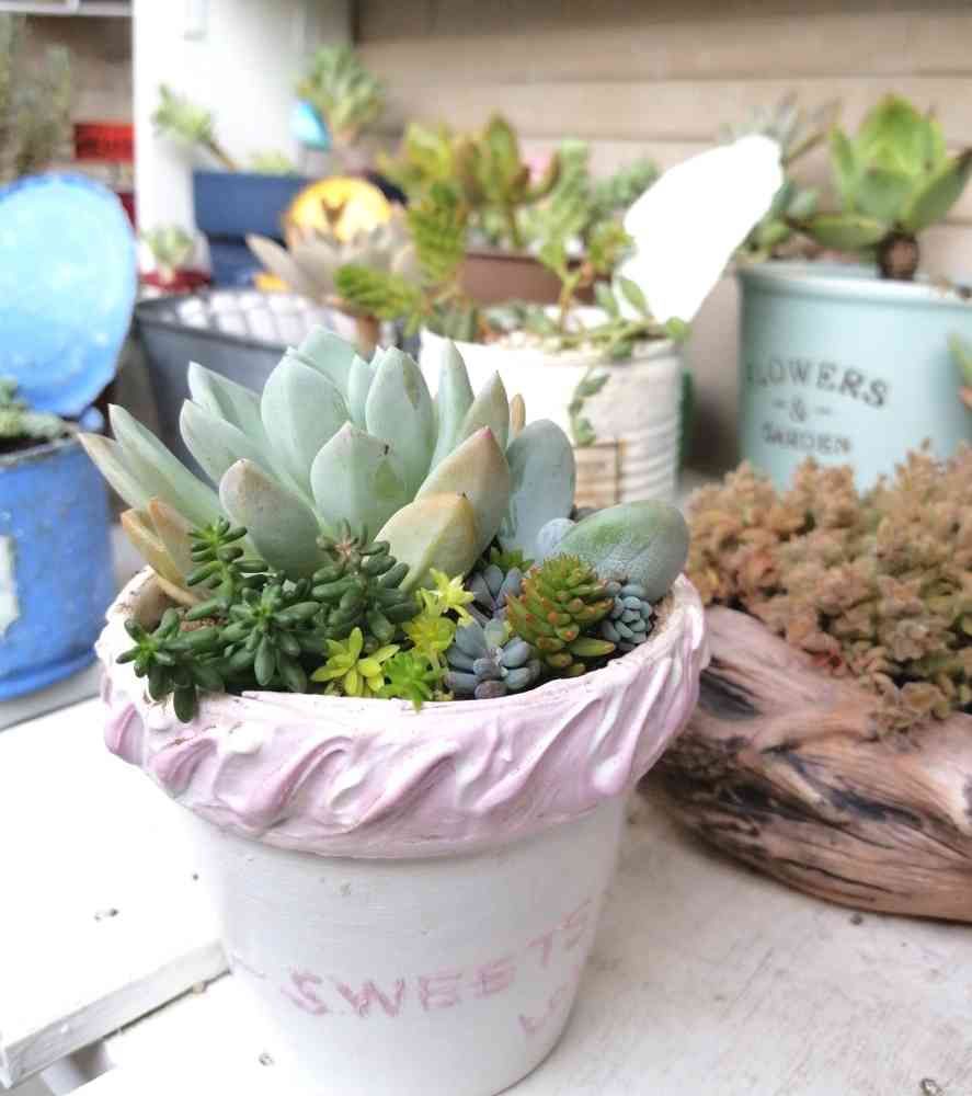 とろけホイップのスイーツリメ鉢に寄せ植え💕