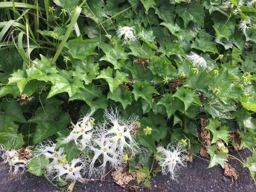 私もこのアプリを始めてから色々と知りました、カラスウリの実は季節になるとお目にかかりますが花は未だに見てません。😅夜の散歩でも行かないと無理みたいですよ。ですのでこの花を発見した、えーさんはラッキーだと思います🤗イイなぁ🥰