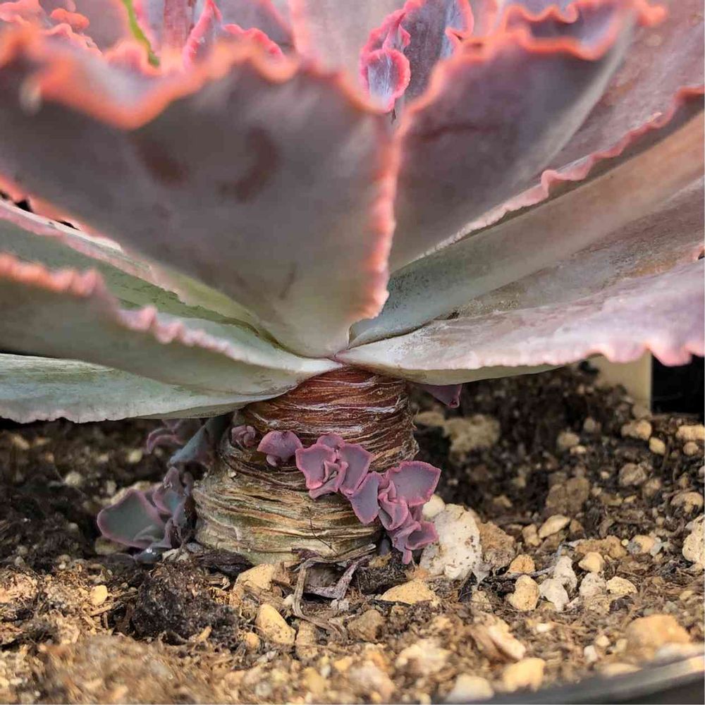 元株はこの夏かなり葉を落とし一回り小さくなってしまいましたが、小さな子株がらせん状にぐるっと付きました😊