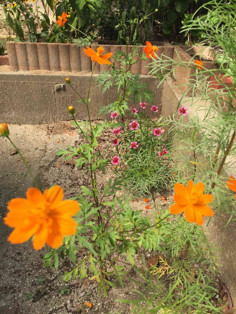 本当はここにピンクコスモスも咲く予定だったけど、開花が遅れています🌸