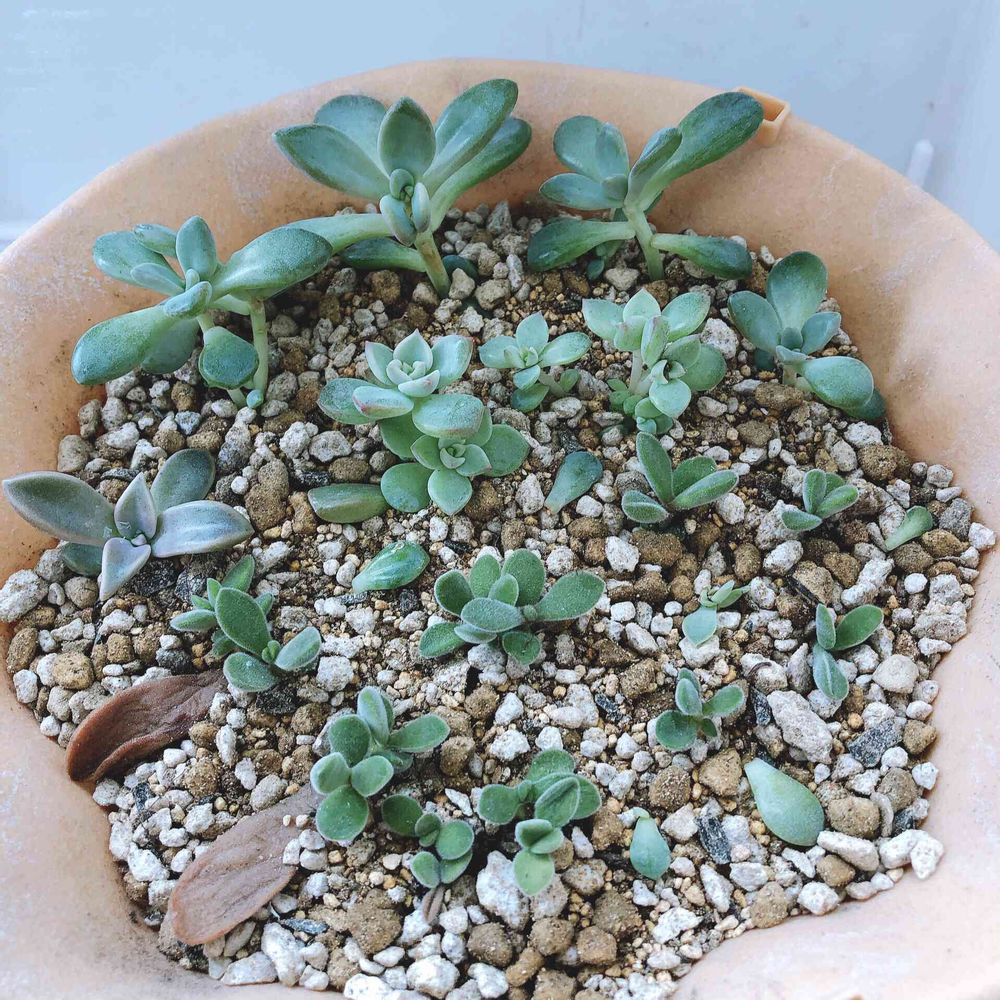 頂いた葉挿しから育てた物がある程度、育って来たので多肉用土に植え替えました。