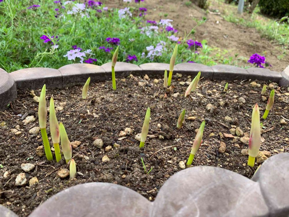 群生している彼岸花だと茎だけ見るとニンニクの芽にも見えます(*´艸`)
