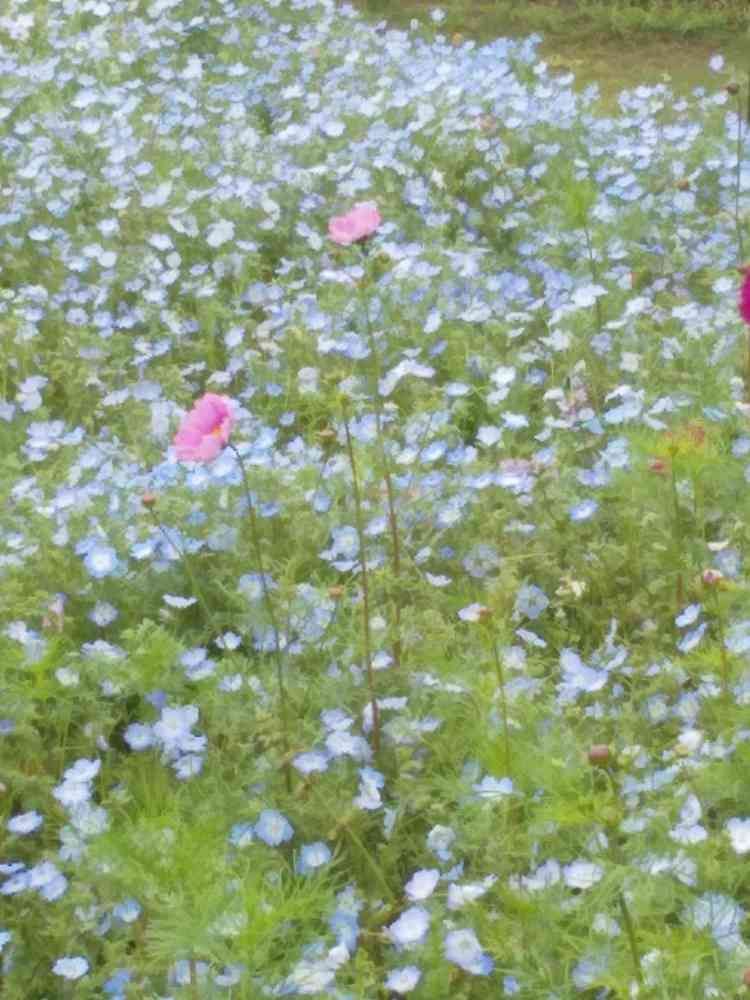 秋の花のコスモスがなにかネモフィラにしっとりし 優しくていい雰囲気でした