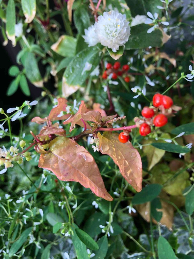 本当は秋のお花たちと組み合わせて寄植えしたいのに、頑張ってる千日紅(笑)