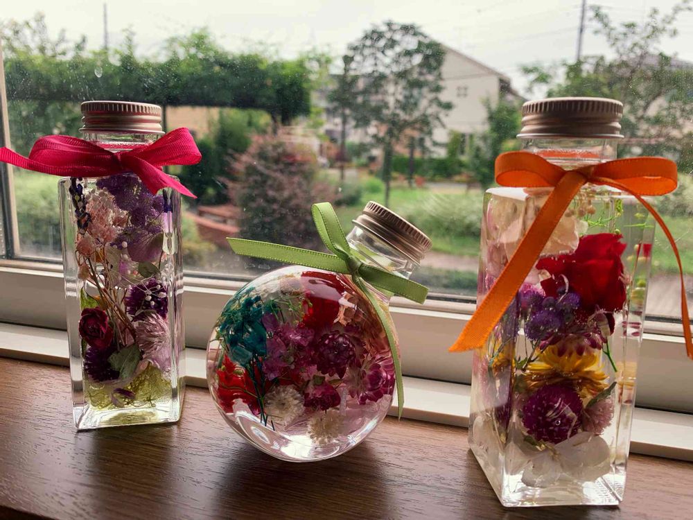 はい。公園の千日紅、紫陽花、アナベルなどなどシリカゲルでドライフラワーにしました😊
