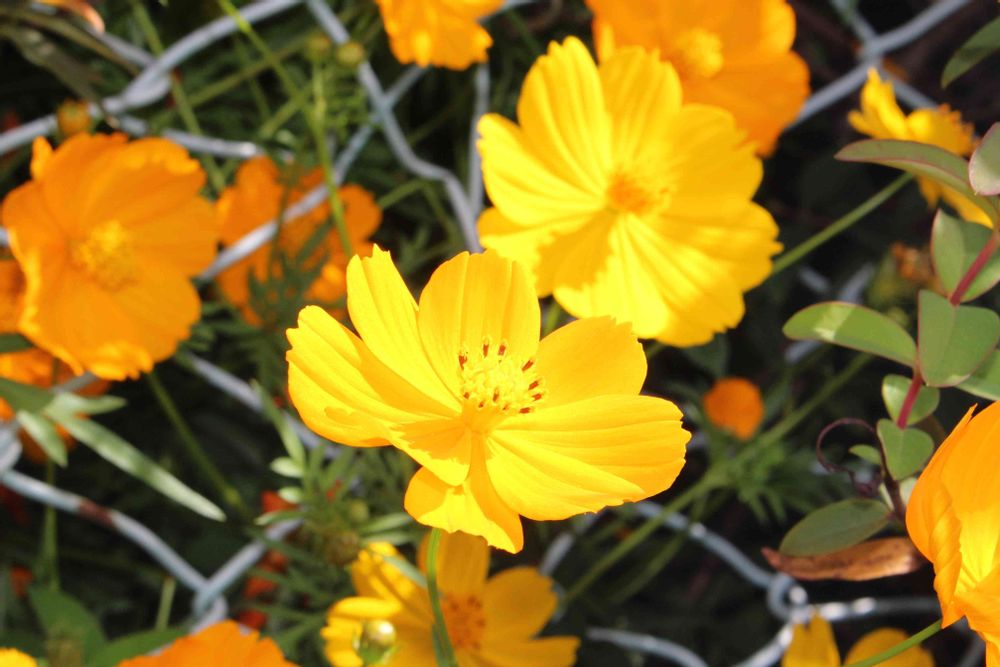 金網フェンスの隙間を縫うように太陽に向かってもりもりと咲き広がります。