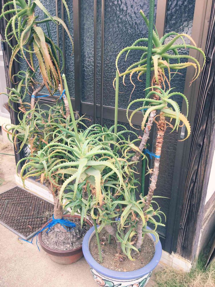 今うちの家にあるアロエの親元、うちのお婆ちゃんの家にいる、推定15年以上のでっかいアロエです😁(確か左?)