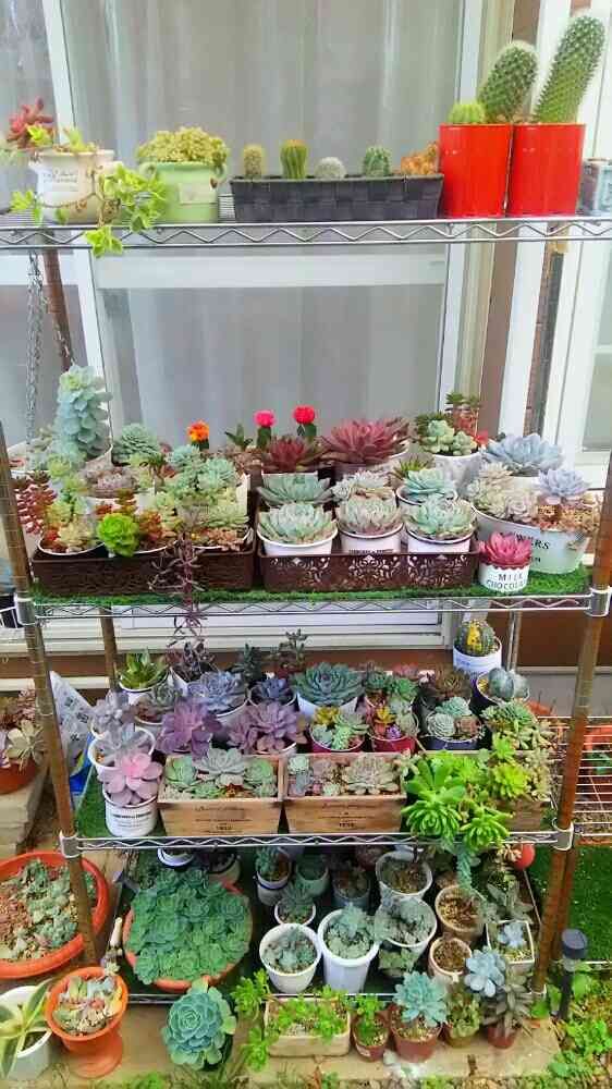 相変わらず、お外組多肉棚は元気モリモリです(人´ з`*)♪