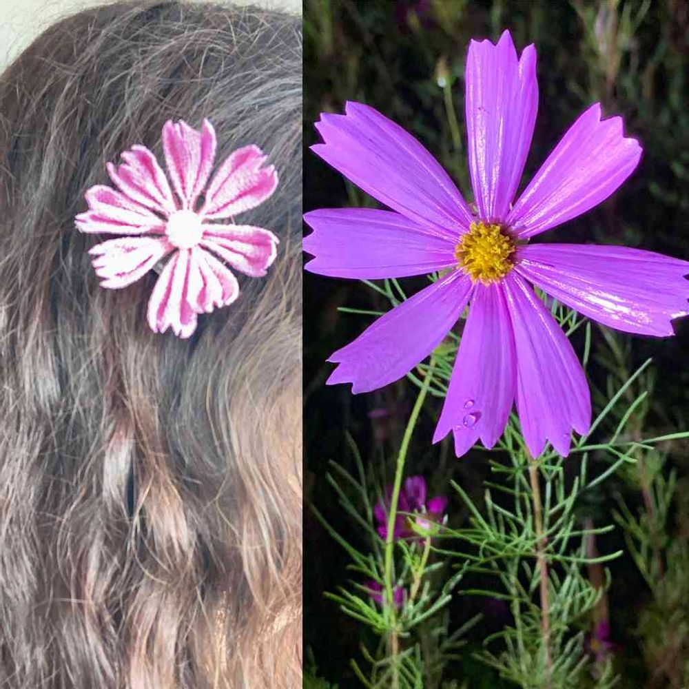 コスモスの花を 髪留めにして💜