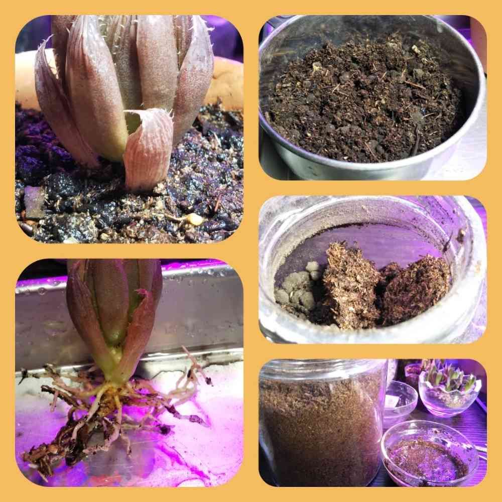 ミキシング用の瓶に入れて用土を混ぜるんだ。右上はミキシングした用土だね。🧓