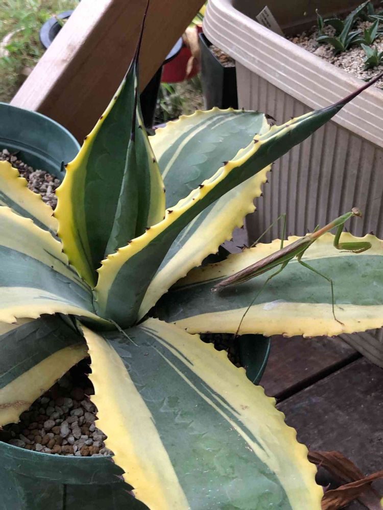 アガベにカマキリが卵をダメですよね〜!けど多いアガベなら危ないですよ!
