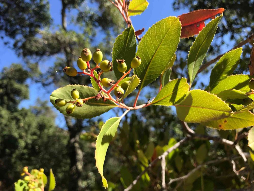 ハイキングで小さな緑の実を見つけました。調べたところToyonという木らしいです。カリフォルニア原産。