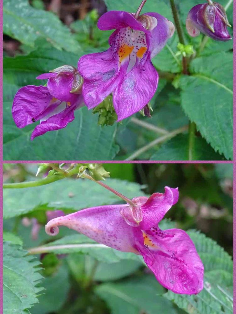 尻尾のクルリンが面白いのですが、同じツリフネソウの黄色のキツリフネはクルリンとしないで、ダランとしてる…似てるようでも違う特徴を持ってる花だと思います😄