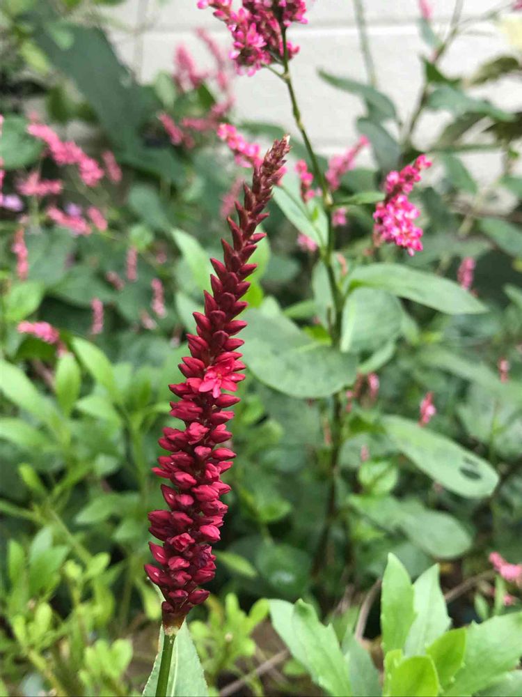 上田で買ってきたペルシカリア(タデ)で花穂が赤黒く大きめのブラックフィールド。