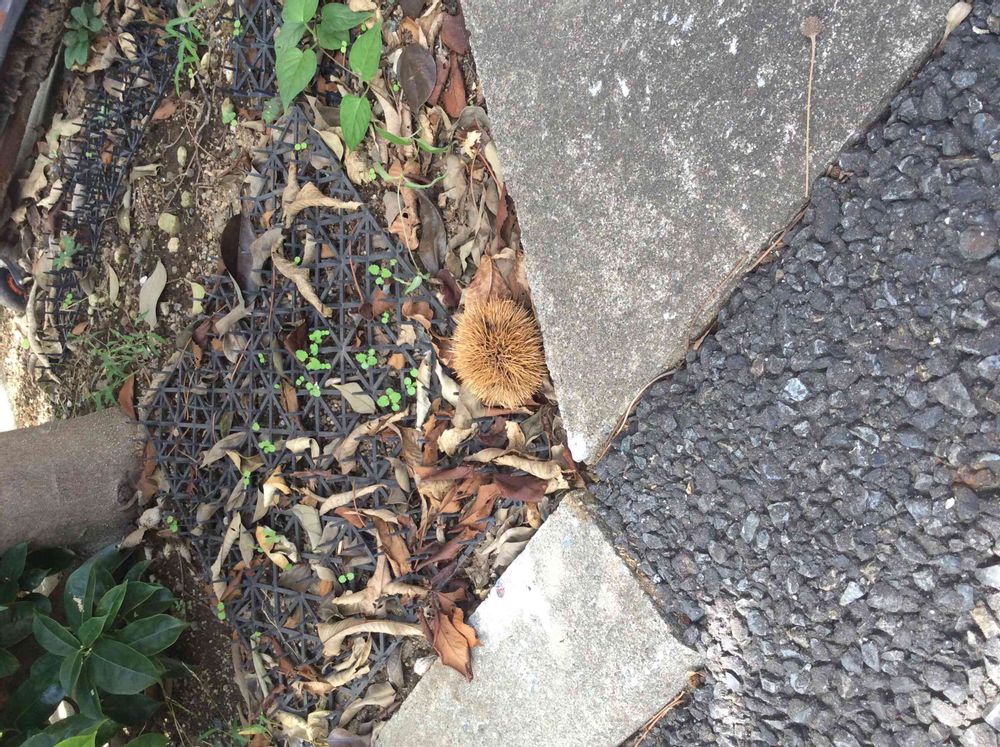 台風15号で飛ばされてきた緑の栗が茶色くなっている🌰