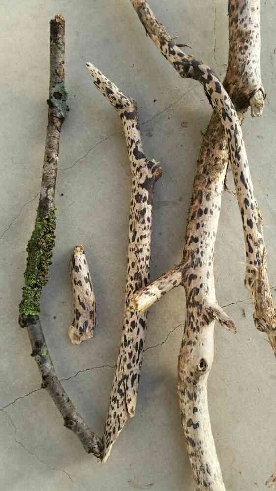 山の入口に落ちていた豹柄の折れ木と苔付きの折れ木
