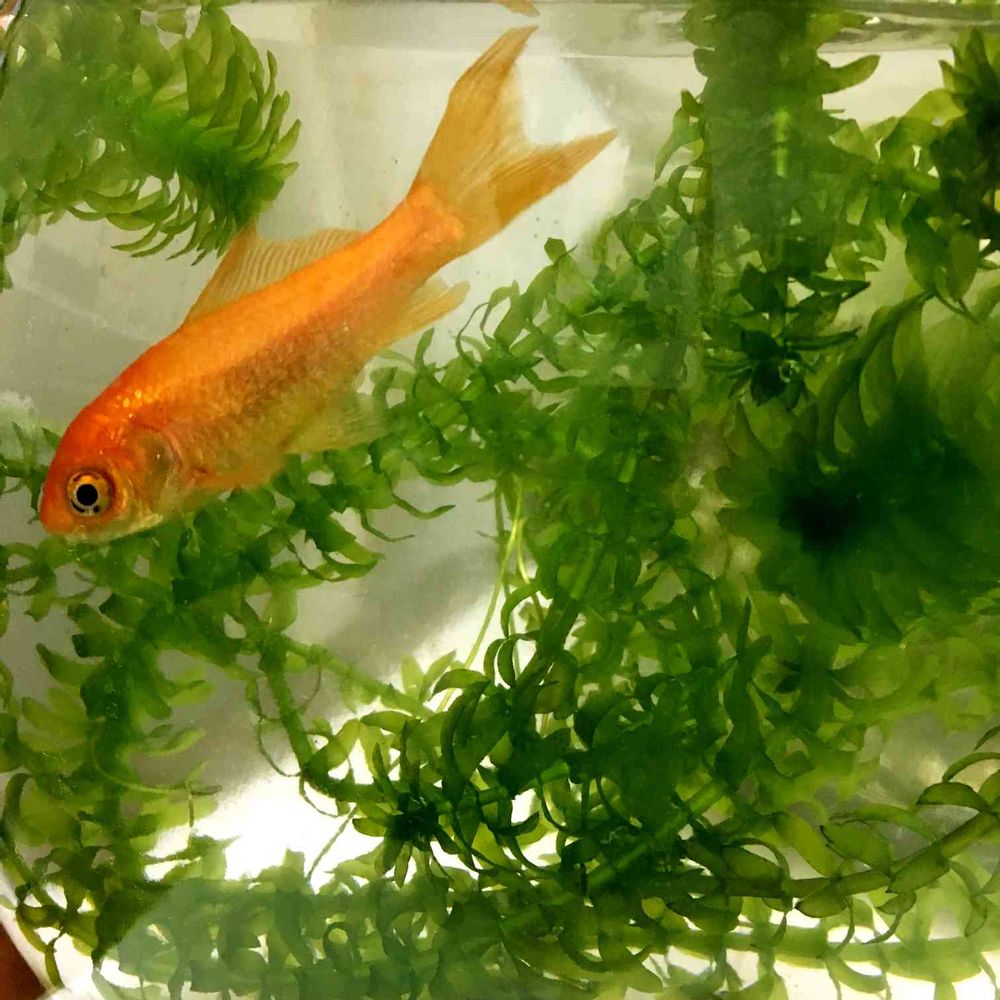 アナカリスが生い茂る金魚鉢。