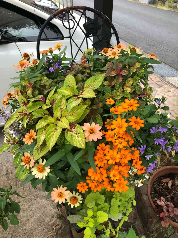 9月初めに作るハンギングはお花の種類も限られているので、すきな色を選んだら秋っぽくなりましたね😊🍁