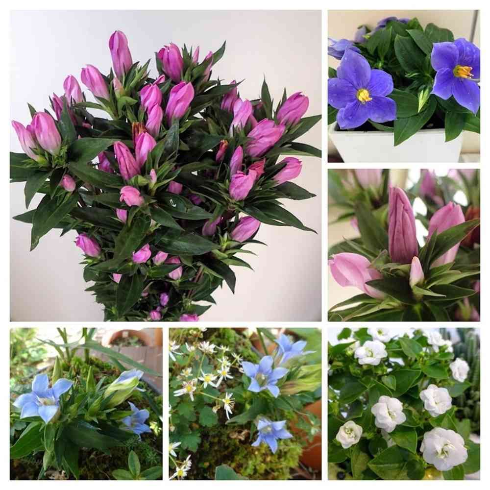 今日のお花、リンドウです。ピンクのは頂き物の切り花で、品種は不明です。ブルーのは、ササリンドウで、北海道から本州中部に自生する野草です。平成27年秋に「ヤチ坊主苔だるま君」に植えこんでそのままですが、さすがに水苔が劣化して、そろそろ限界かもしれません💦写真は28年のものです。エキザカムは、リンドウとはイメージが違いすぎますが、和名を紅姫リンドウといって、リンドウ科の植物なんですね。かすかに香りもあり、好きなお花なんですが、宿根させられませんorz(調べてみると、もともと短命な植物で、挿し芽で更新していくと長持ちさせられるそうです。←エキザカムのことです。)