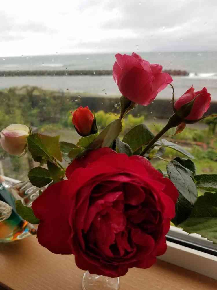 背景の海と薔薇さんが凄くマッチしてて素敵な写真ですね😊
